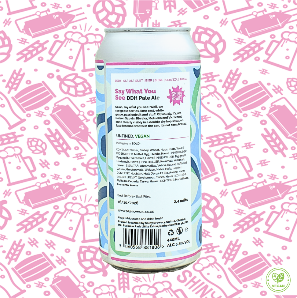 Go on, say what you see! Well, we see gooseberries, lime zest, white grape, passionfruit and stuff. Obviously, it’s just Nelson Sauvin, Riwaka, Motueka and Vic Secret quite clearly visibly in a double dry hop situation. Just describe what’s in the can, it’s not complicated.